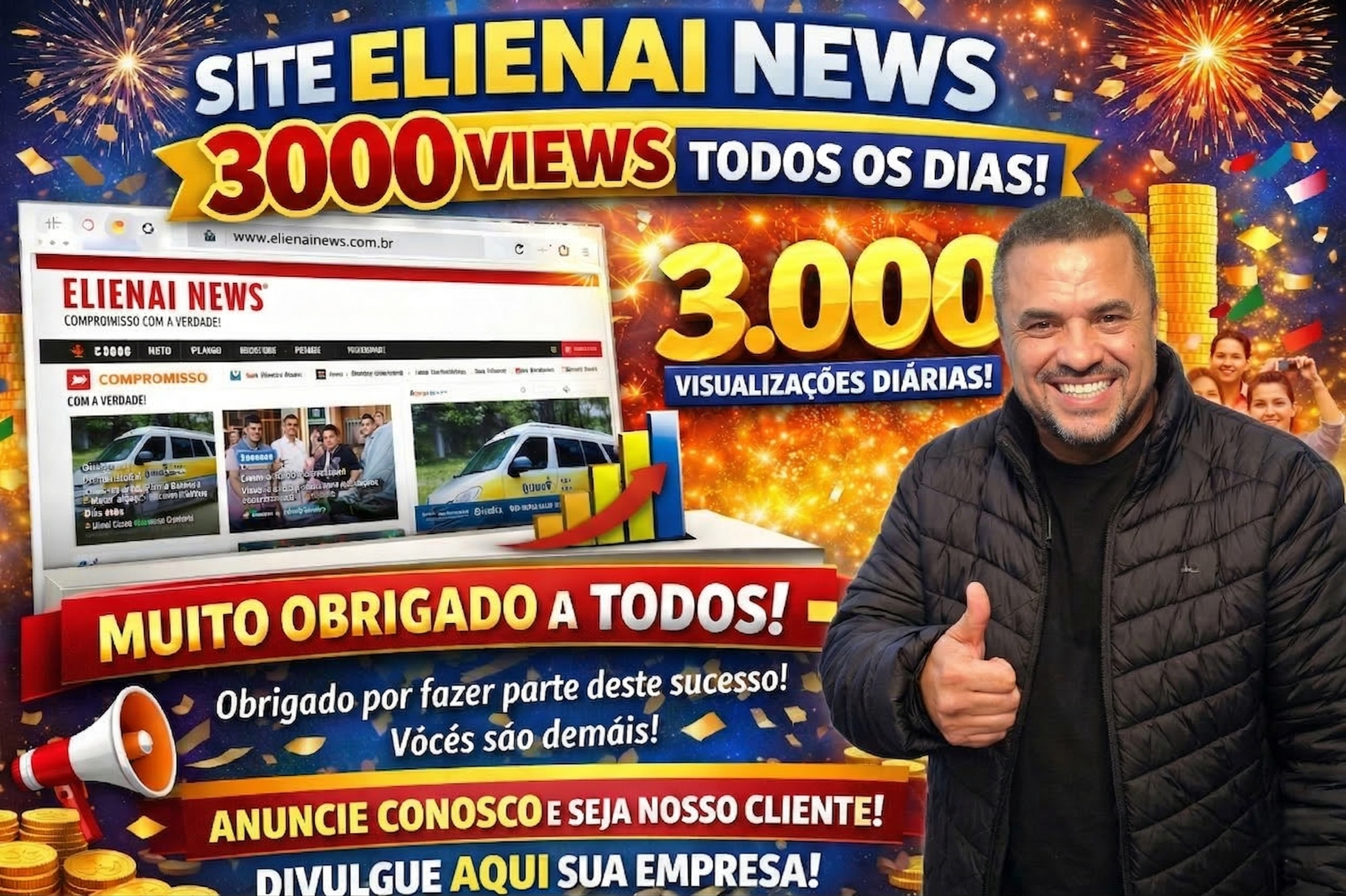 Após dois anos de muito trabalho, o site Elienai News celebra uma marca histórica: 3.000 visualizações diárias. O crescimento consolida o portal como uma das fontes de informação que mais crescem na região, com conteúdo direto, transparente e de confiança.