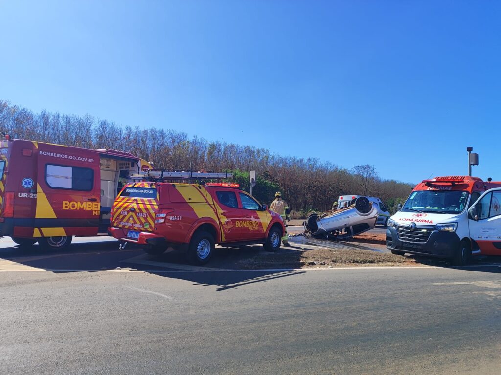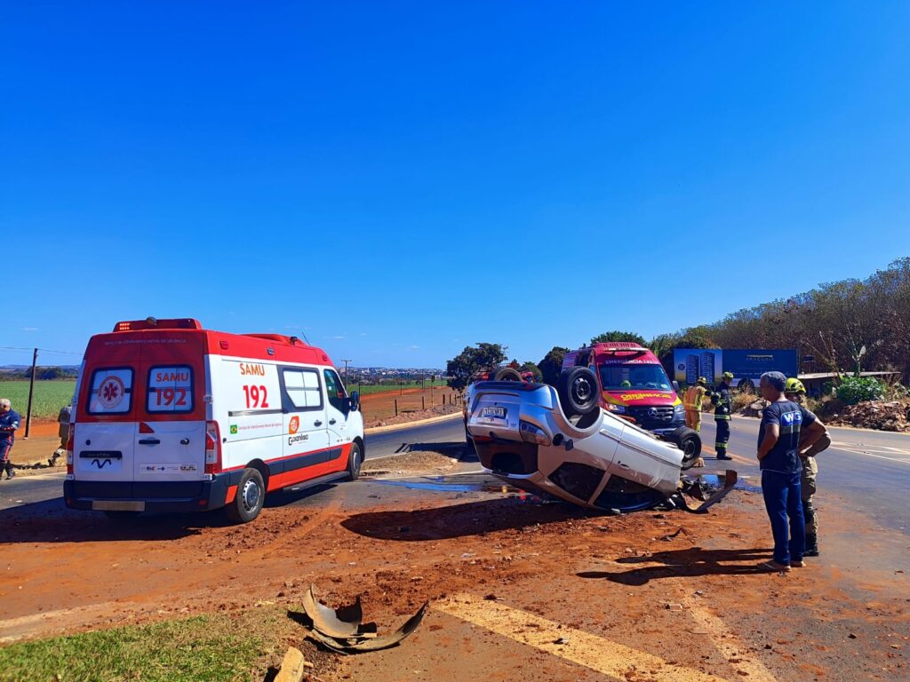 Na tarde deste sábado, um grave acidente foi registrado no Trevo da Vera Cruz, na GO-080, em Goianésia. O choque envolveu um veículo de passeio e um veículo de grande porte, causando sérios danos aos dois automóveis.