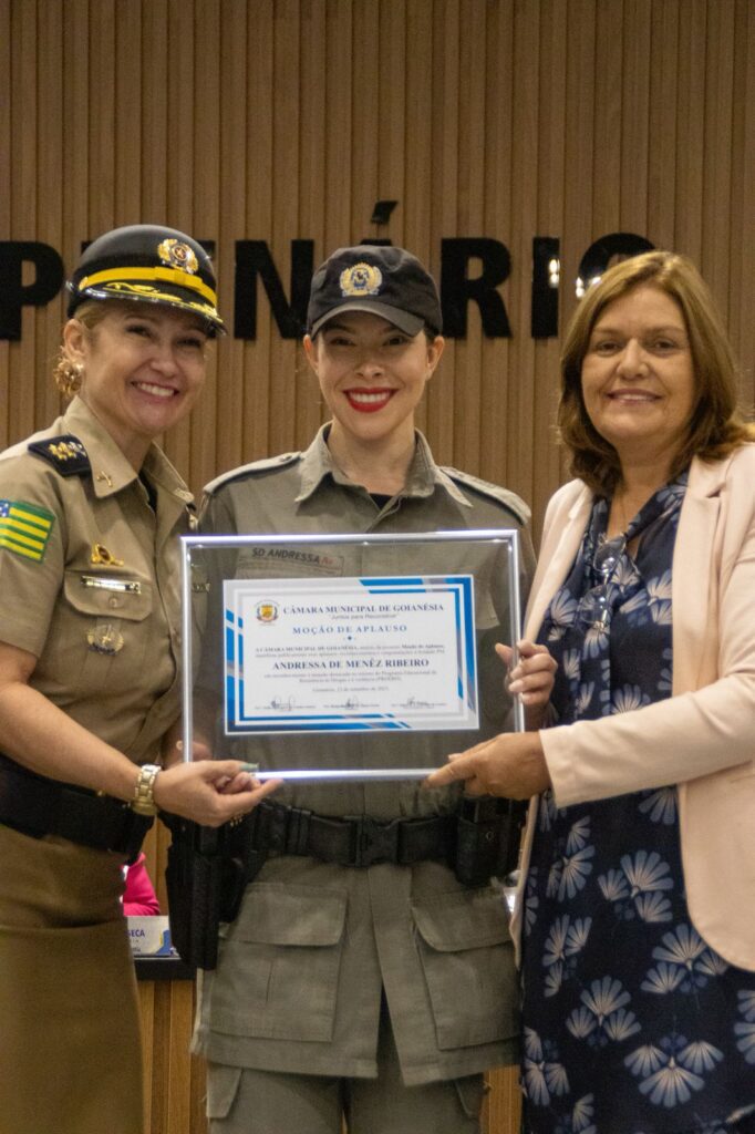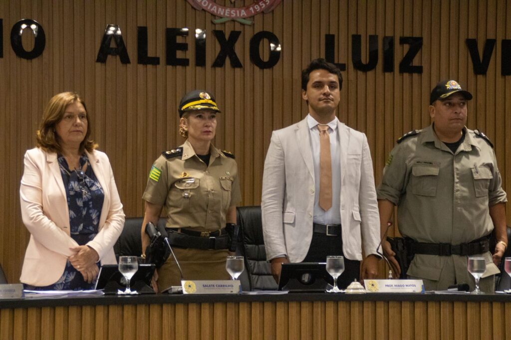 Na manhã desta terça-feira, 23 de setembro, a Câmara Municipal de Goianésia realizou uma homenagem especial à tenente-coronel Neila de Castro, comandante do Programa Educacional de Resistência às Drogas e à Violência (Proerd), e aos policiais que integram o projeto. A entrega de uma Moção de Aplauso, aprovada pelo plenário, reconheceu o impacto do programa na conscientização de crianças e adolescentes contra o uso de drogas.