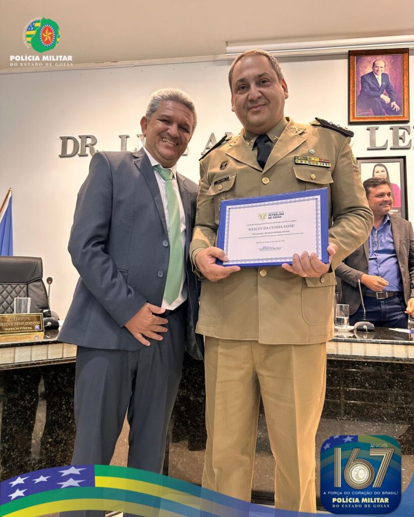 Comandante e Policiais do 54º BPM São Homenageados em Petrolina de Goiás - ELIENAI NEWS