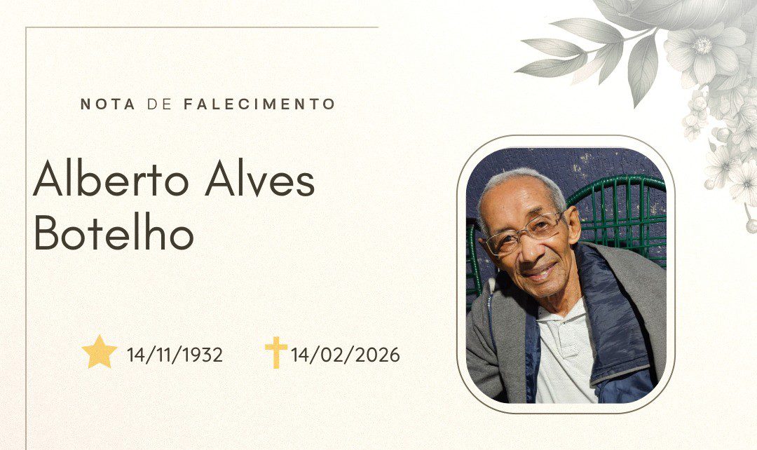 A Equipe Elienai News se solidariza com os familiares e amigos de Alberto Alves Botelho neste momento de despedida. Que seus 93 anos de vida sejam lembrados com carinho, gratidão e respeito, e que todos encontrem paz e conforto para seguir adiante.
