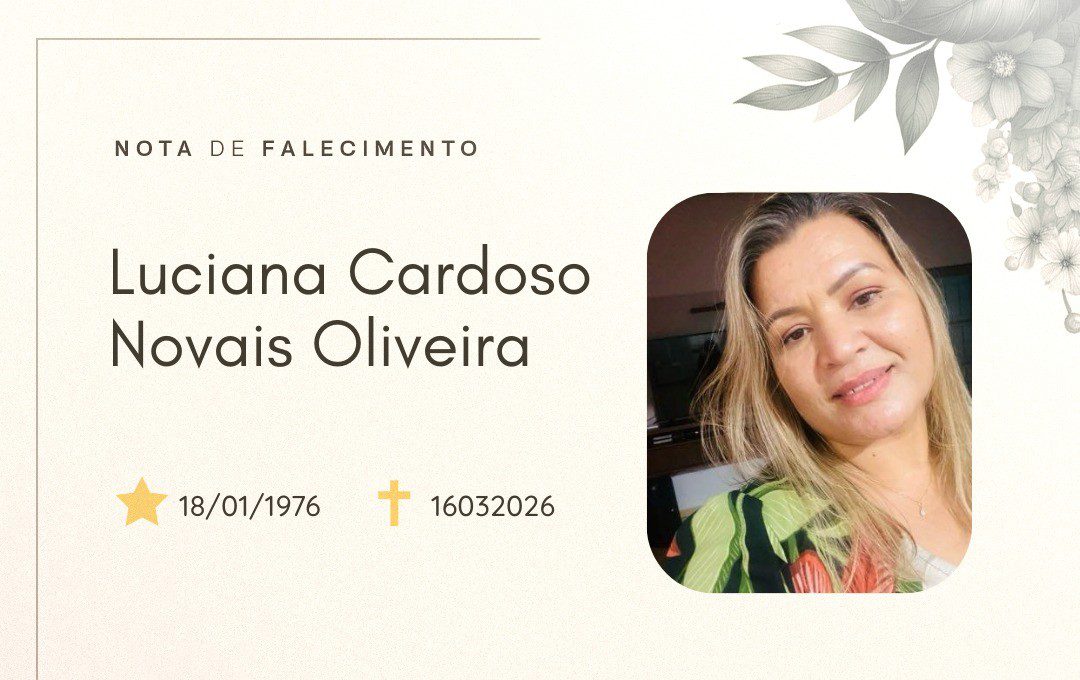 A Equipe Elienai News se solidariza com os familiares e amigos de Luciana Cardoso Novais Oliveira neste momento de despedida. Que seus 50 anos de vida sejam lembrados com carinho, gratidão e respeito, e que todos encontrem paz e conforto para seguir adiante.