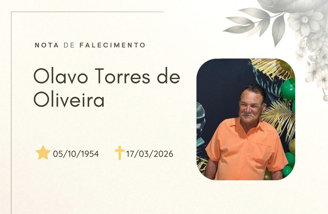 A Equipe Elienai News se solidariza com os familiares e amigos de Olavo Torres de Oliveira neste momento de despedida. Que seus 71 anos de vida sejam lembrados com carinho e que todos encontrem paz e conforto para seguir adiante.