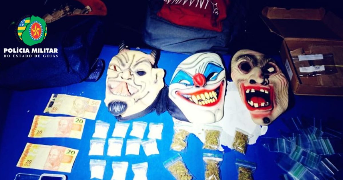 Em entrevista, um dos infratores informou possuir mais drogas em sua residência. No local, as equipes localizaram mais entorpecentes, além de três máscaras de palhaço e materiais para embalar as substâncias.