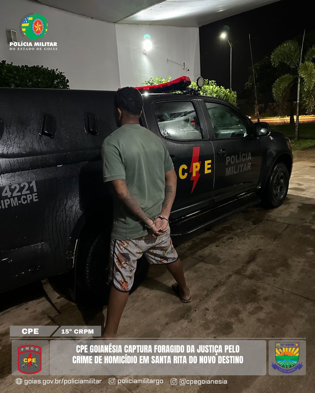 A Companhia de Policiamento Especializado (CPE 90) do 15º CRPM recapturou um foragido da Justiça na manhã desta terça-feira, 3 de fevereiro de 2026, em Santa Rita do Novo Destino, Goiás. O homem, condenado por homicídio, era procurado há meses e foi localizado após compartilhamento de informações entre a 10ª CIPM, CPE 20 e CPE Goianésia.