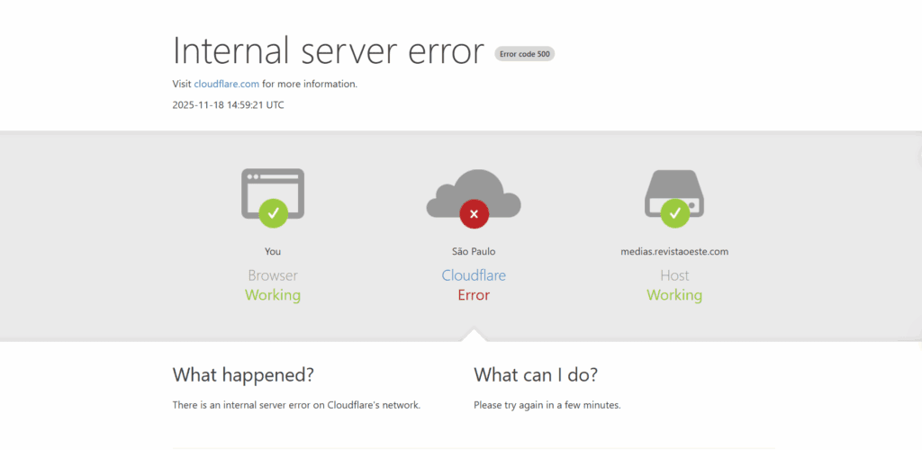 A degradação de serviços começou por volta das 6h40 (horário de Brasília), impactando cerca de um quinto do tráfego web mundial. No Brasil, usuários enfrentaram erros de carregamento em sites de compras, streaming e redes sociais, com picos de denúncias no DownDetector. A Cloudflare, responsável por proteção contra ciberataques e otimização de conteúdo, notificou que alguns serviços, como o portal de suporte, também foram afetados.