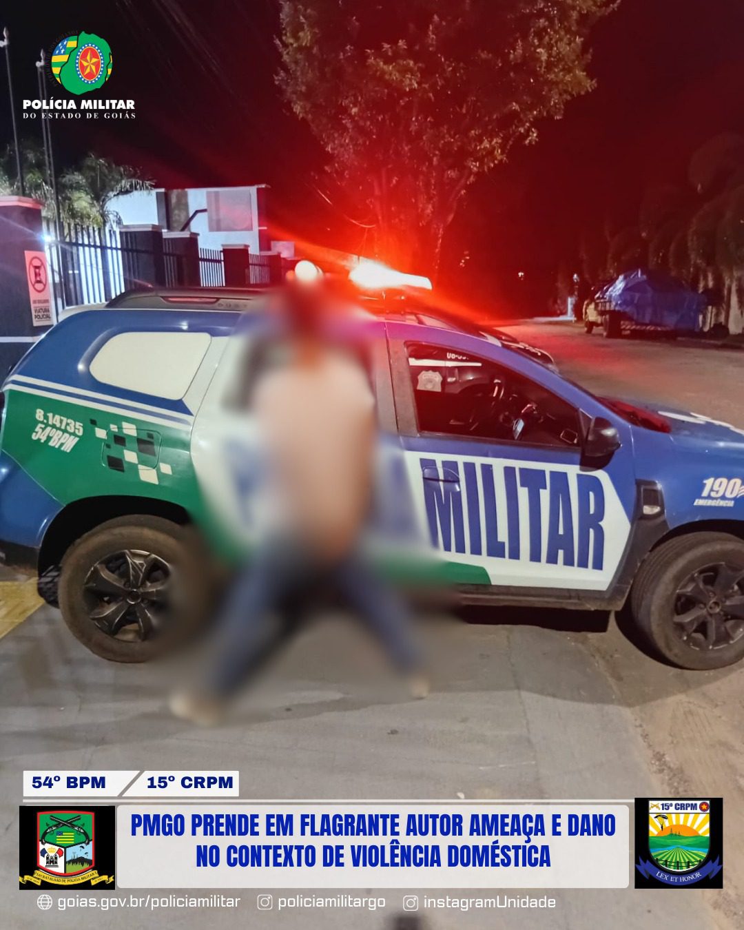 Durante o atendimento, o autor ameaçou matar a mãe e a irmã após a saída da polícia. Diante do flagrante, foi dada voz de prisão, sendo necessário o uso de algemas devido ao seu estado agressivo. Após avaliação médica, ele foi encaminhado à Delegacia de Polícia Civil de Jaraguá para as providências legais.